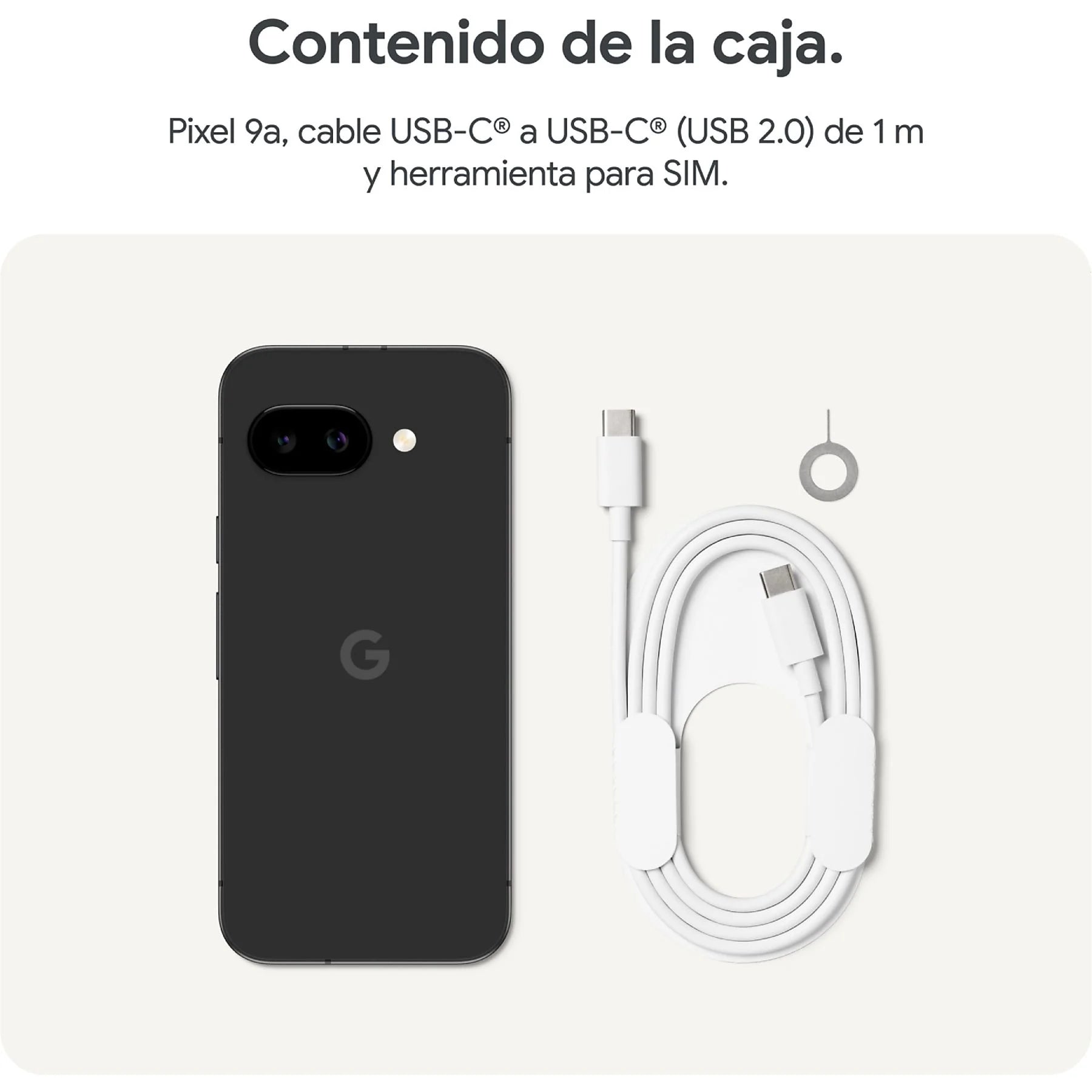 1x Google Pixel 9a, 1x cable USB-C a USB-C, 1x herramienta para SIM |