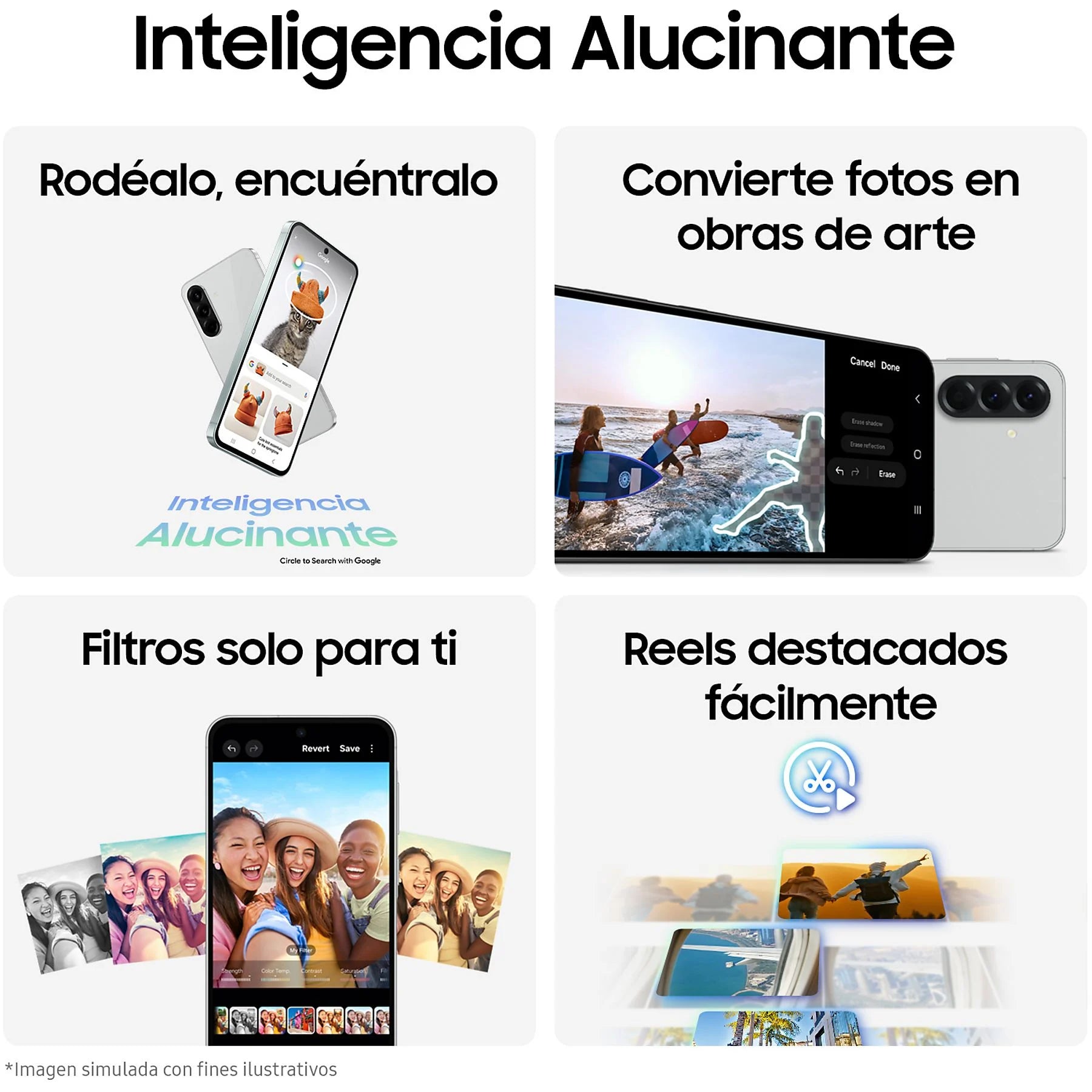 Galaxy A56 5G lleva la Inteligencia Alucinante a otro nivel. Con Circle to Search, obtén respuestas al instante solo rodeando lo que quieres saber. El Borrador de objetos elimina elementos no deseados en tres simples pasos, mientras que Mejor cara elige automáticamente la mejor expresión en fotos grupales. Recorte automático crea videos perfectos sin esfuerzo, y con filtros personalizados, puedes darles a tus fotos el estilo de una imagen de referencia.