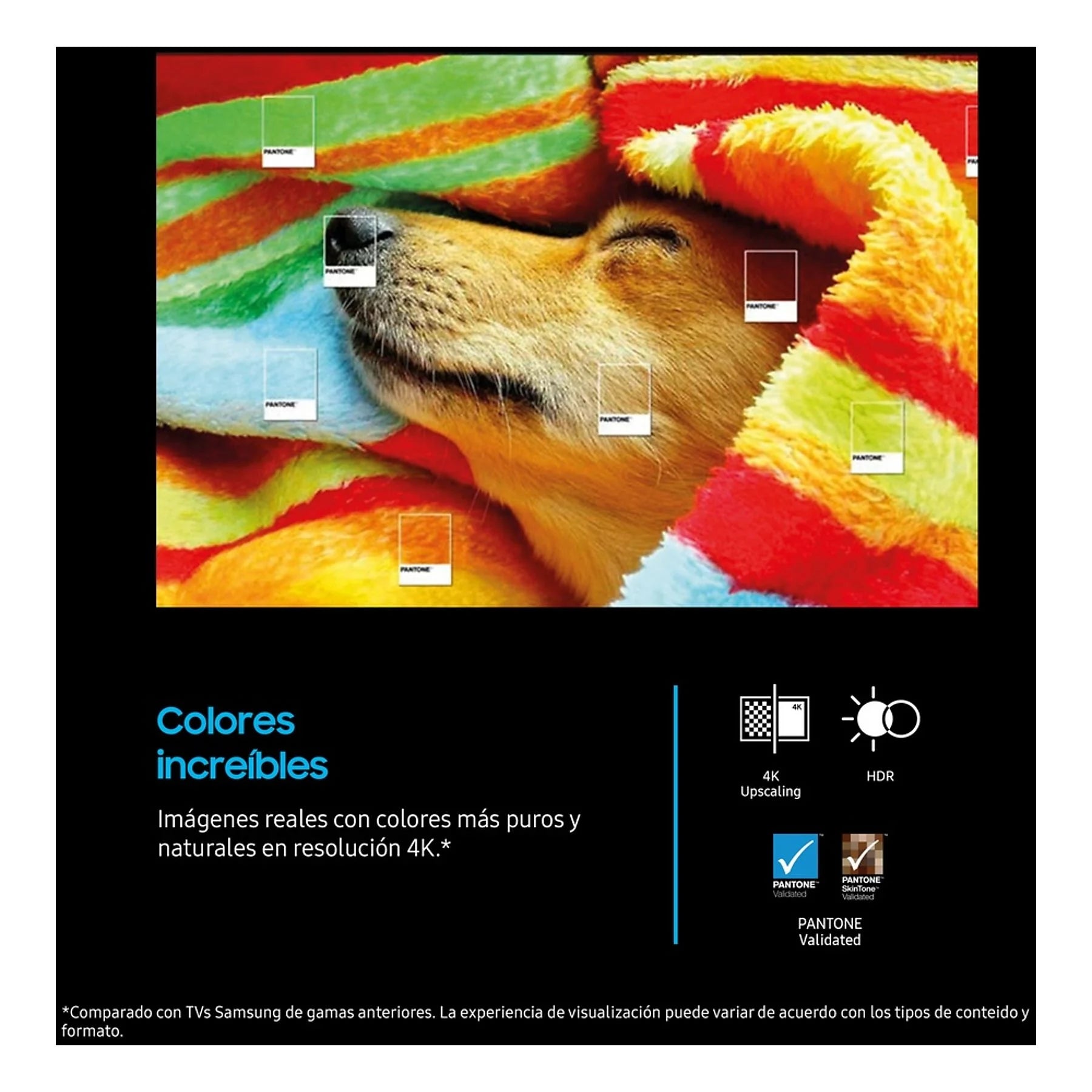 Con 4K AI Upscaling visiona tu contenido favorito en resolución 4K, gracias a que el procesador AI toma el contenido y lo escala a 4K con 20 redes neuronales. Quantum HDR te permite apreciar detalles ultra brillantes, contrastes y negros profundos, mientras Q-Symphony, una tecnología que empareja el sonido de tu TV con el de la barra de sonido para sonar al mismo tiempo, crea una atmósfera envolvente en la que sumergirte.